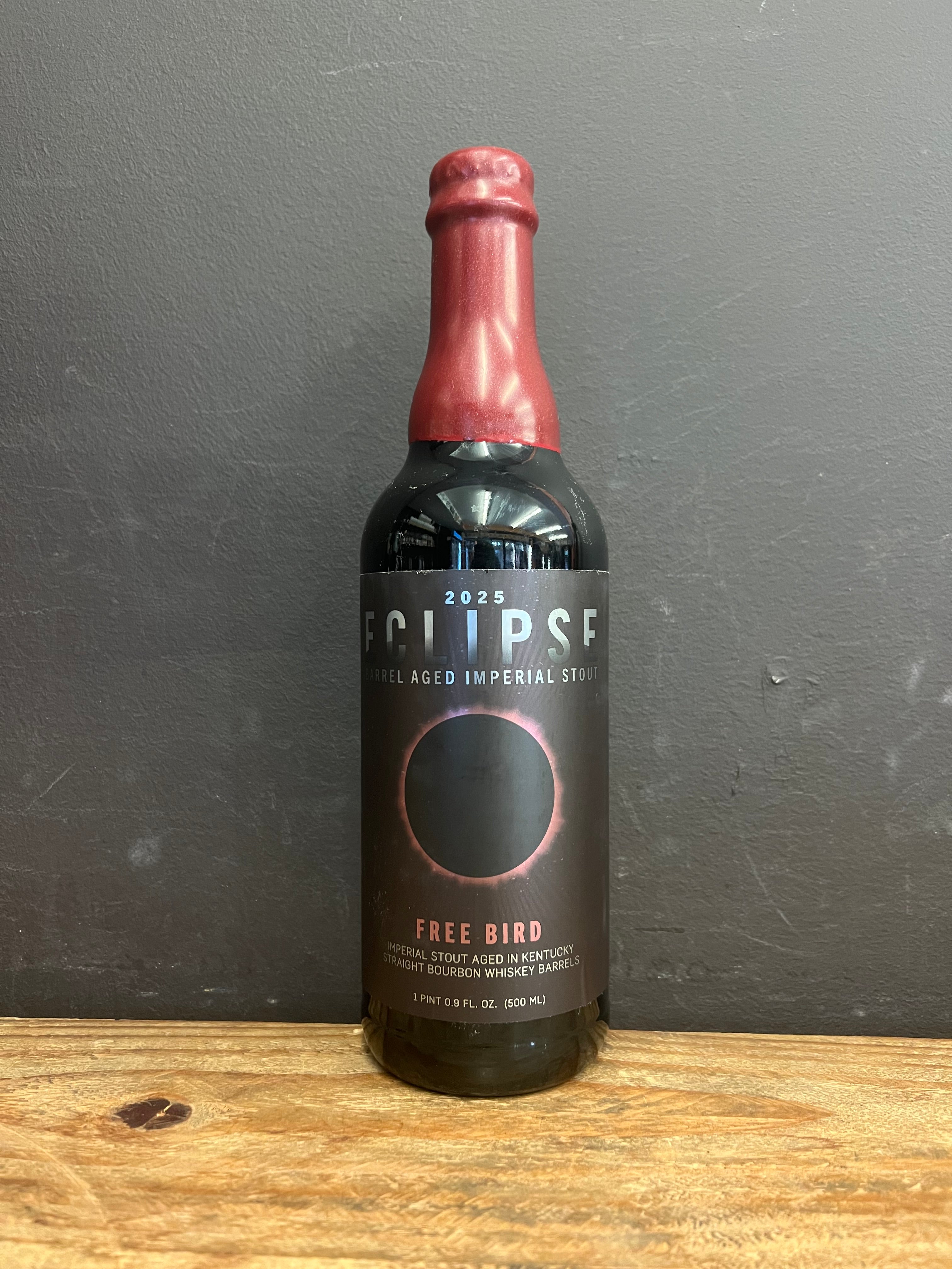 2025 Eclipse is FiftyFifty's rich Imperial Stout aged to perfection in whiskey and spirit barrels. All Eclipse starts with the same base beer, bringing hints of dark chocolate, espresso, and a smooth complexity, with each barrel treatment delivering its own unique character after a minimum of 180 days of aging. Free Bird is aged exclusively in Kentucky Straight Bourbon Whiskey Barrels.