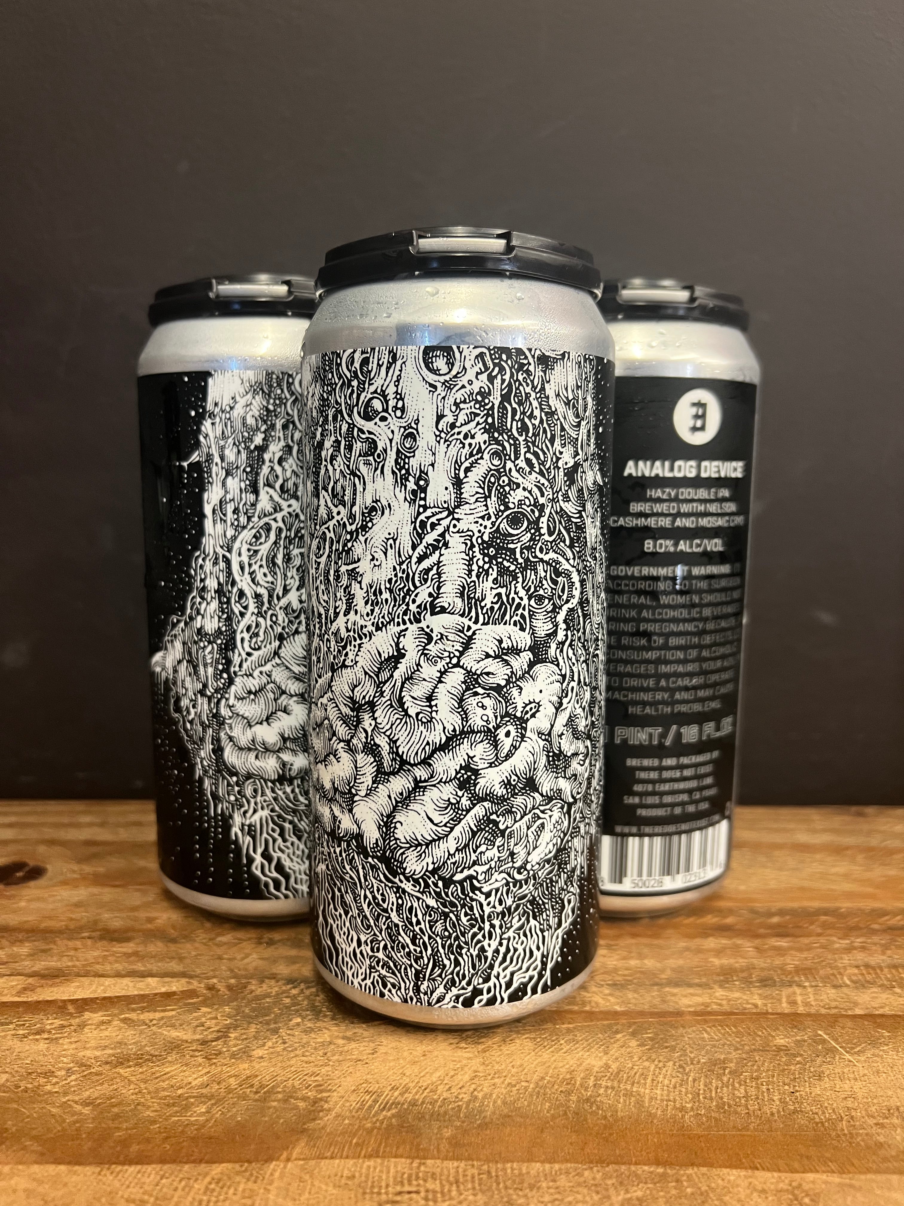 Analog Device is a super fluffy, hazy double IPA built with enough oats that TDNE almost put Quaker out of business. The oats and wheat give this beer a soft mouthfeel, a good body, and great foam. They hopped this beer hot side with too many pounds of Galaxy & Strata. This laid the base for a mega dry hop of Nelson, Citra, Mosaic, and more Strata + Galaxy. This hop cocktail lends itself to strong aromatics and flavors of passion fruit, red grapefruit zest, gooseberries, and a hint of lime leaf. What does your analog device tell you?